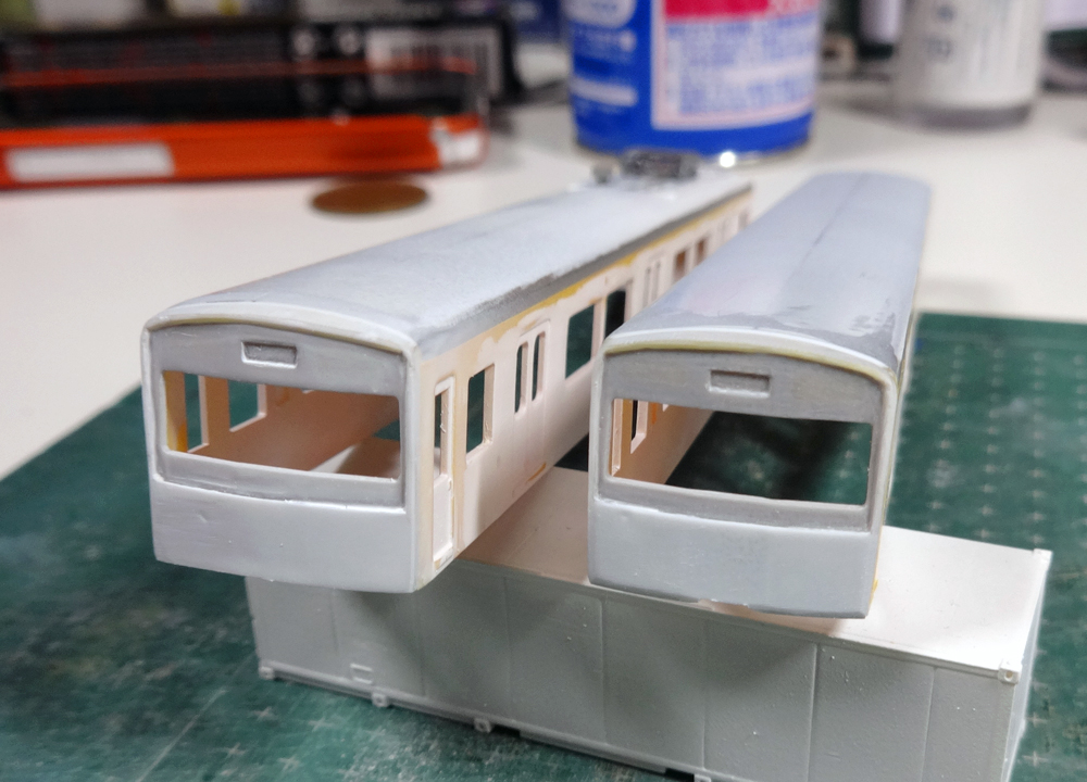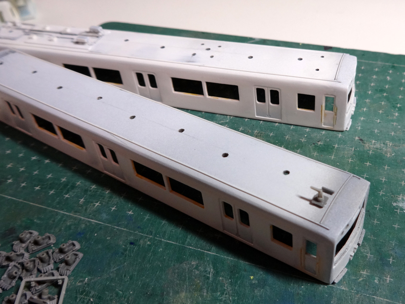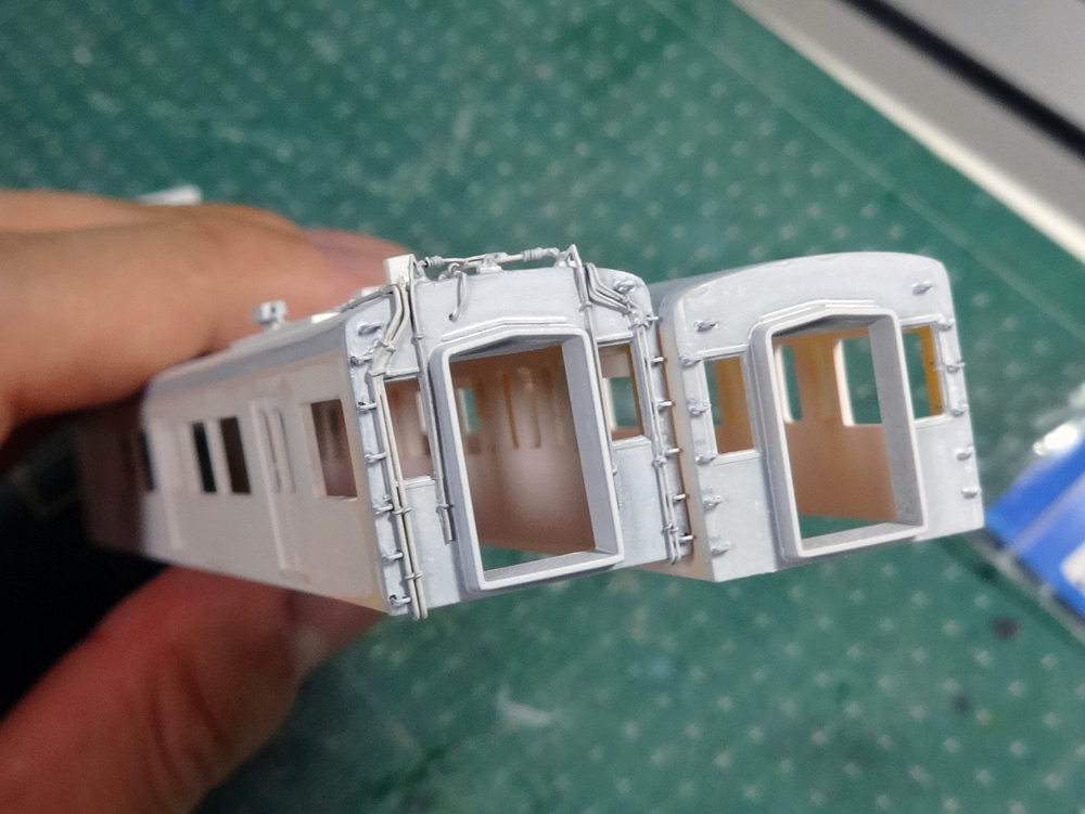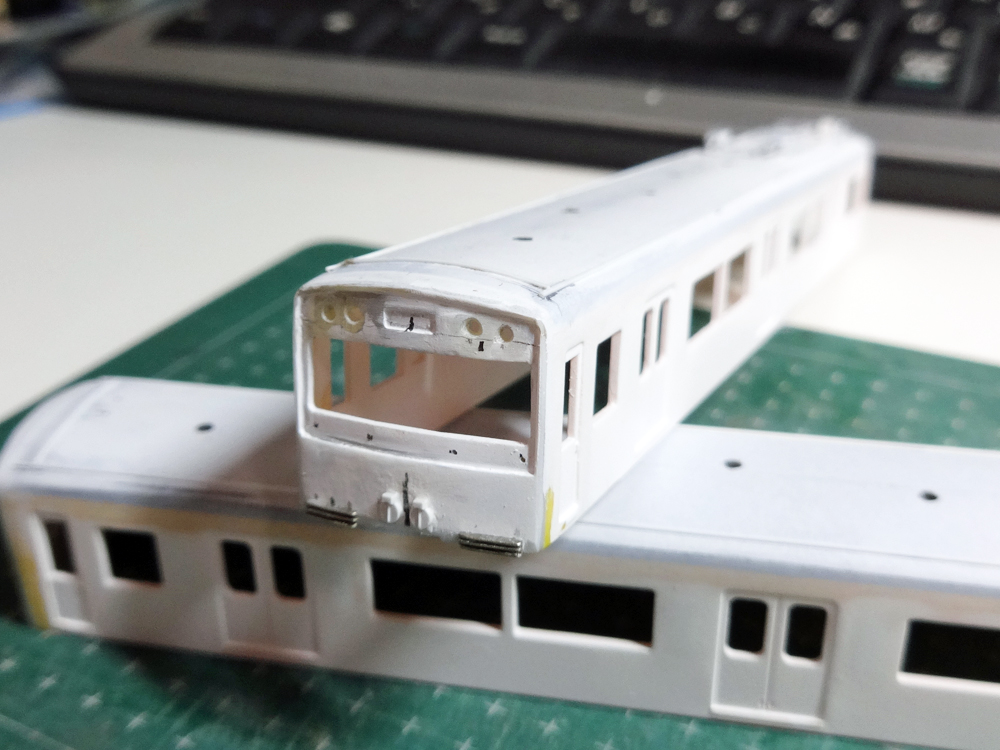 前面のパーツ類でちょっと悩んでいましたが、いい具合の部品を見つけて1両分試作してみました。