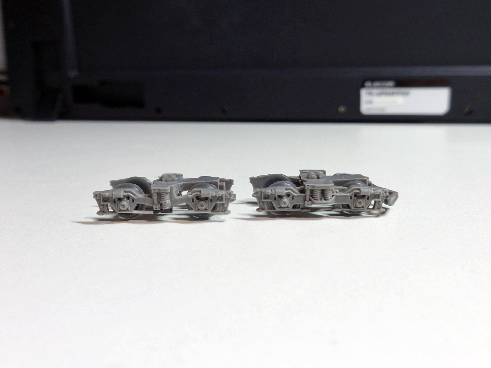 ▲NA-36型台車のような何か(左)と鉄コレNA-18AT台車(右)の比較