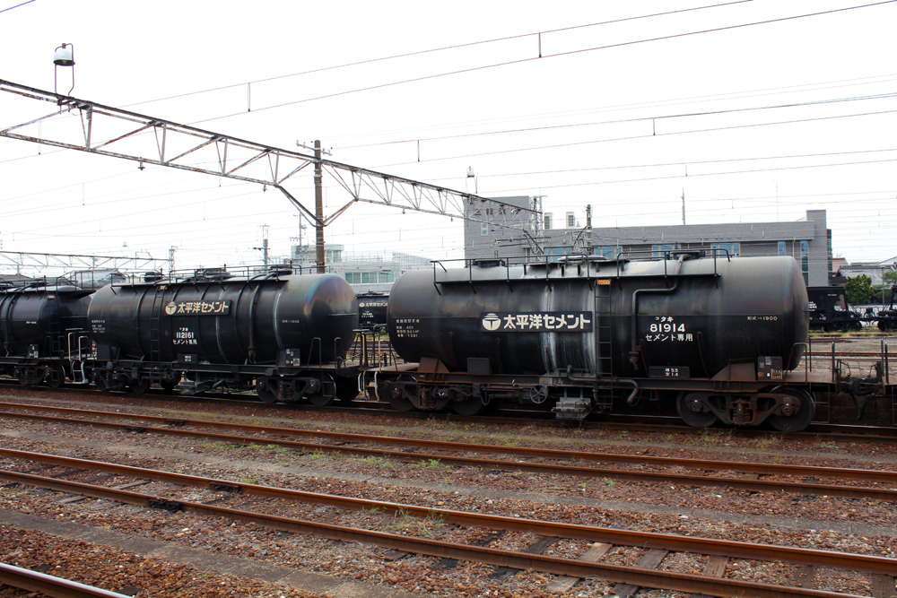 「タキ1900」と書かれていますが写真のように社名板の位置の違いやタンクの補強に違いのある2種類のものが繋がっていました。