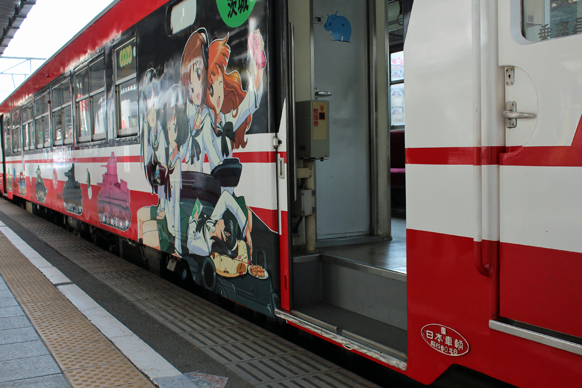 この上り列車こそ撮影を目論んでいた列車、アニメ「ガールズ&パンツァー」ラッピング車です。