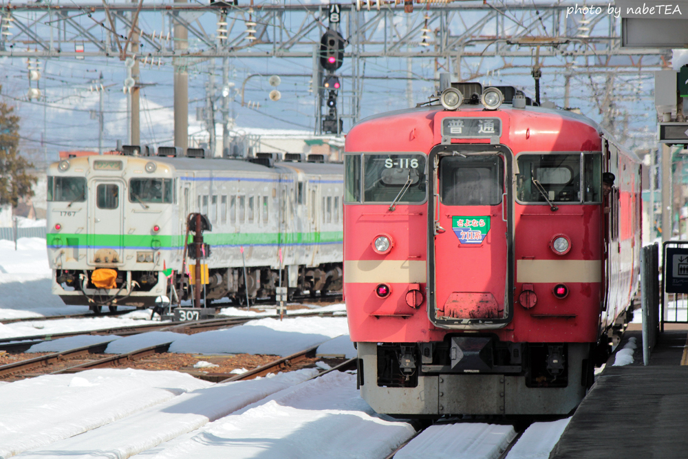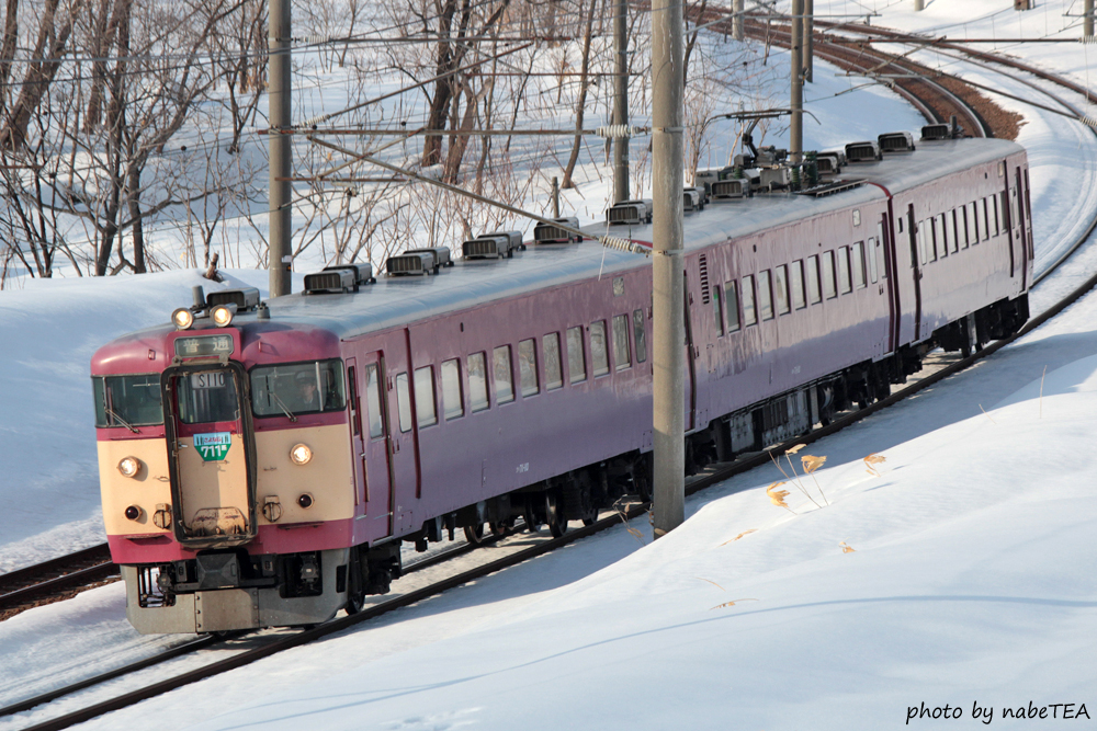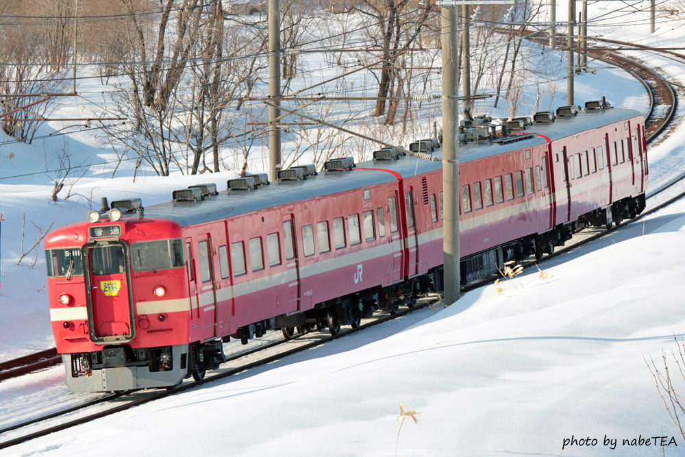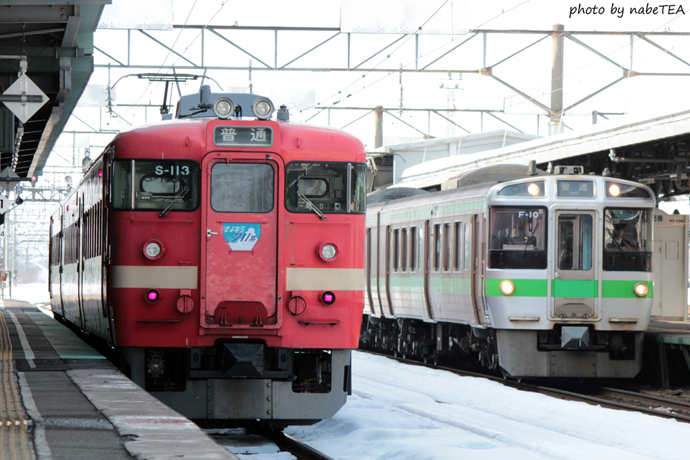 ▲721系にとって変わられた朝の旭川行普通列車と。 2015.3.7