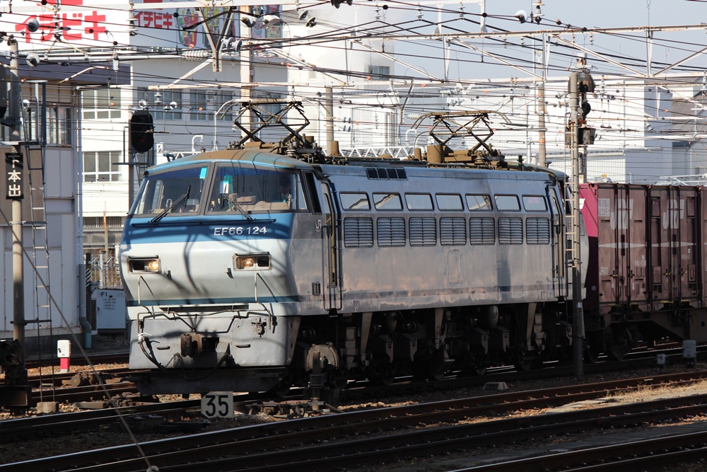 まずはEF66 124号機牽引の上り貨物。