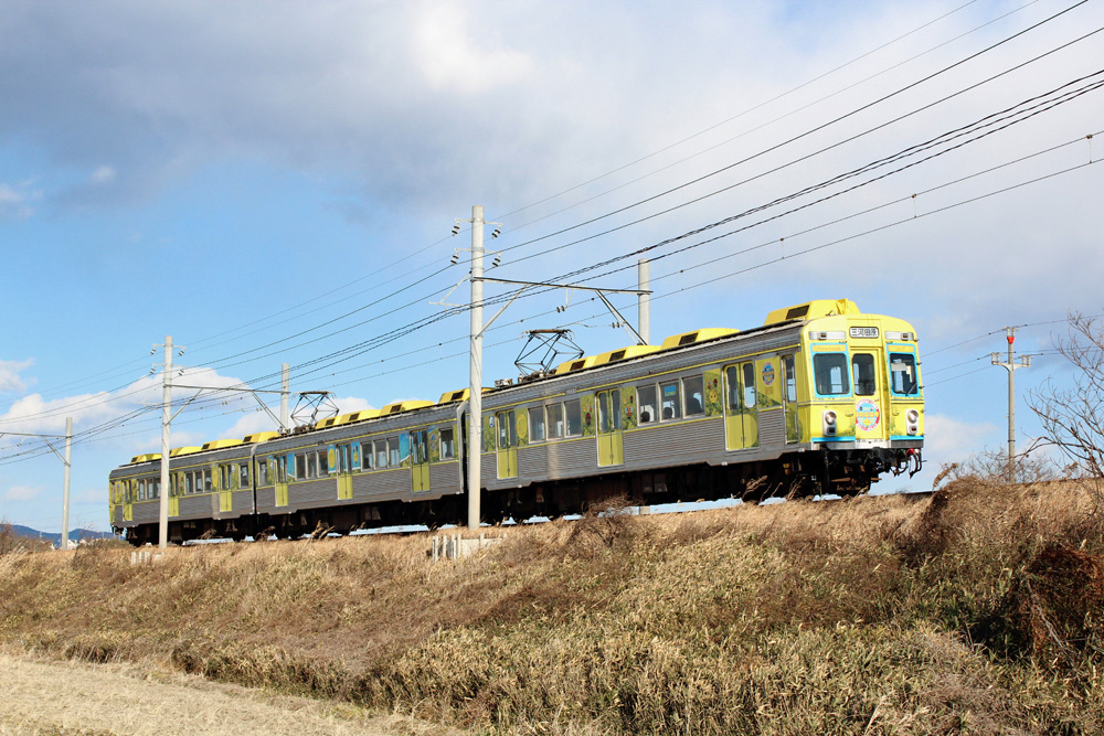 2008年に高師車庫での火災で使用不能になった2両の代わりに上田電鉄で引退となった(※1000系が入線したため)7251Fを貰い受け、無事だった部品取り用1両を繋いで3両編成へと仕立て上げたそうです。