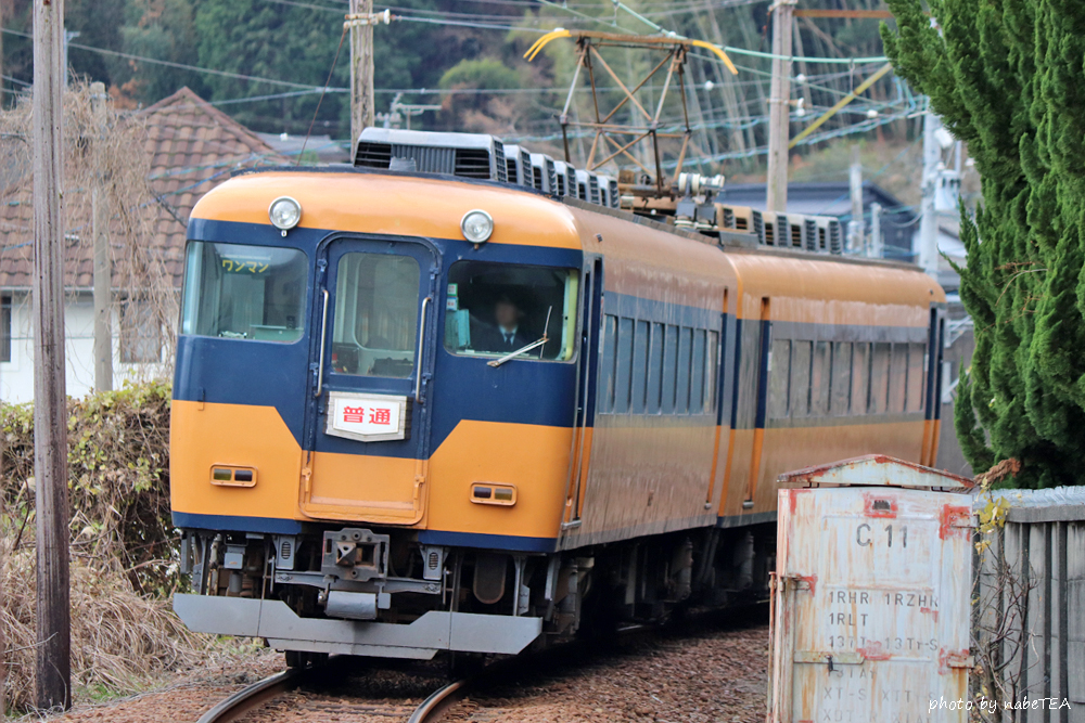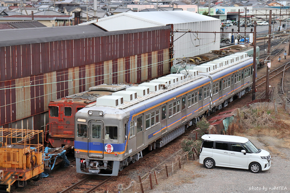 留置されている京阪3000系クハ3507(廃車)、留置中の南海21000系、走って来る南海6000系、行き違いの近鉄16000系と3社の関西私鉄が1アングルに収まる面白い構図になってくれました。