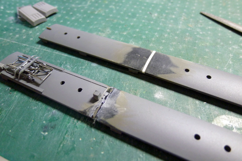 Tc車の方は間にプラ板を挟んで延長するようになってしまいました。