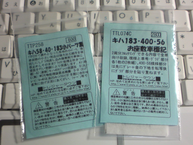 そこでまぁある意味お目当てだったトレジャータウン製のキハ183・400・56系お座敷車用のインレタ1セット等を入手。いろんな意味で危険なものを仕入れてしまいました。。。w