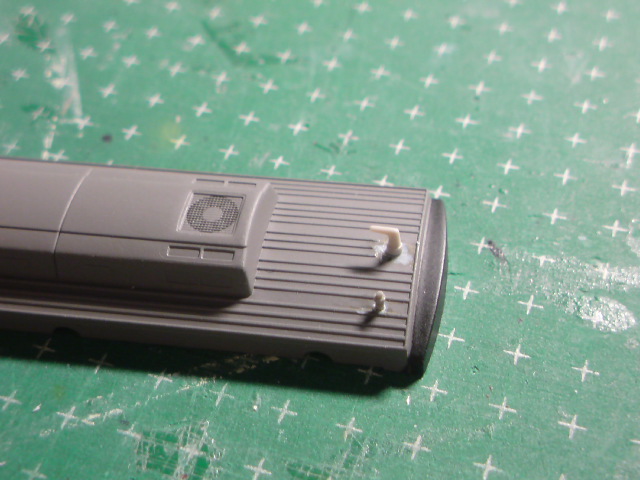 L型アンテナも信号炎管も切り取ってしまい、屋根板のビードを削ってしまわないよう慎重に平らにしていきます。もちろんヤスリがけも行います。