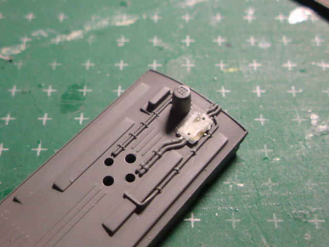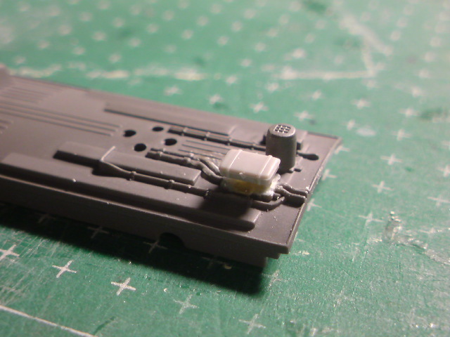 0.5mmのドリルで取り付け用穴を開け、東急9000系用のヒューズボックスをくっつけました。