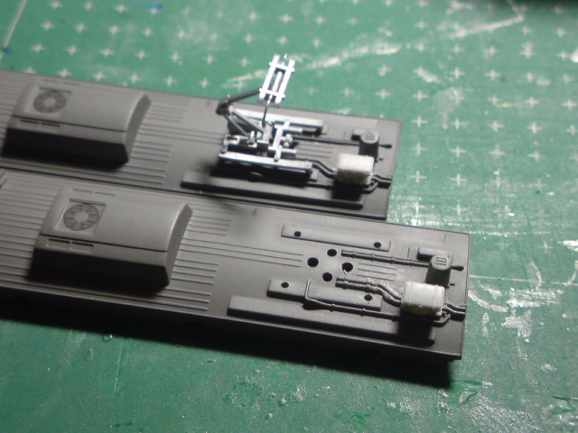 今回はN化ということで台車を履き替えて(実車はグレーですが黒で代用)いますが、さらに床下機器を"それらしく"付けてみました。