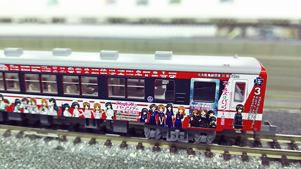 少し前の話になってしまいますが、先だって発売されたKATO鹿島臨海鉄道6000形「ガールズ&パンツァーラッピング列車2号車+3号車2両セット」を引き取って来ました。