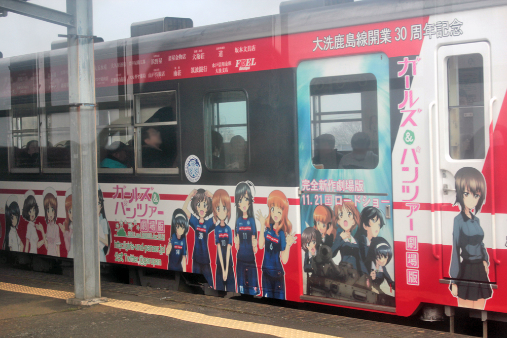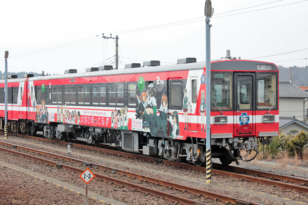 昨年の3月にたまたま茨城へ行く機会があり、ラッピング車の時間に合わせて水戸~大洗間を往復し、2号車・3号車の実車を見てきました。