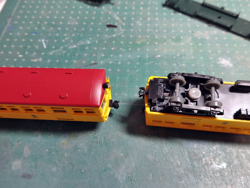 台車のカプラーポケット・腕を全切除したところほとんど首降りに支障がありませんでしたので、このまま採用としてみます。