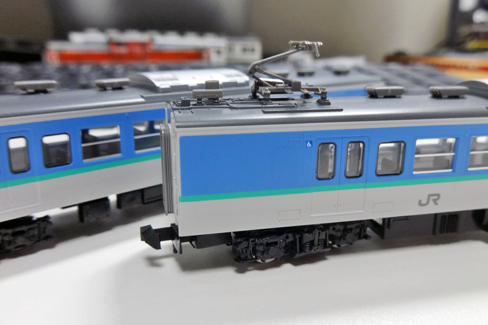 クモハ115形の先頭部にはジャンパ線を取り付け。
