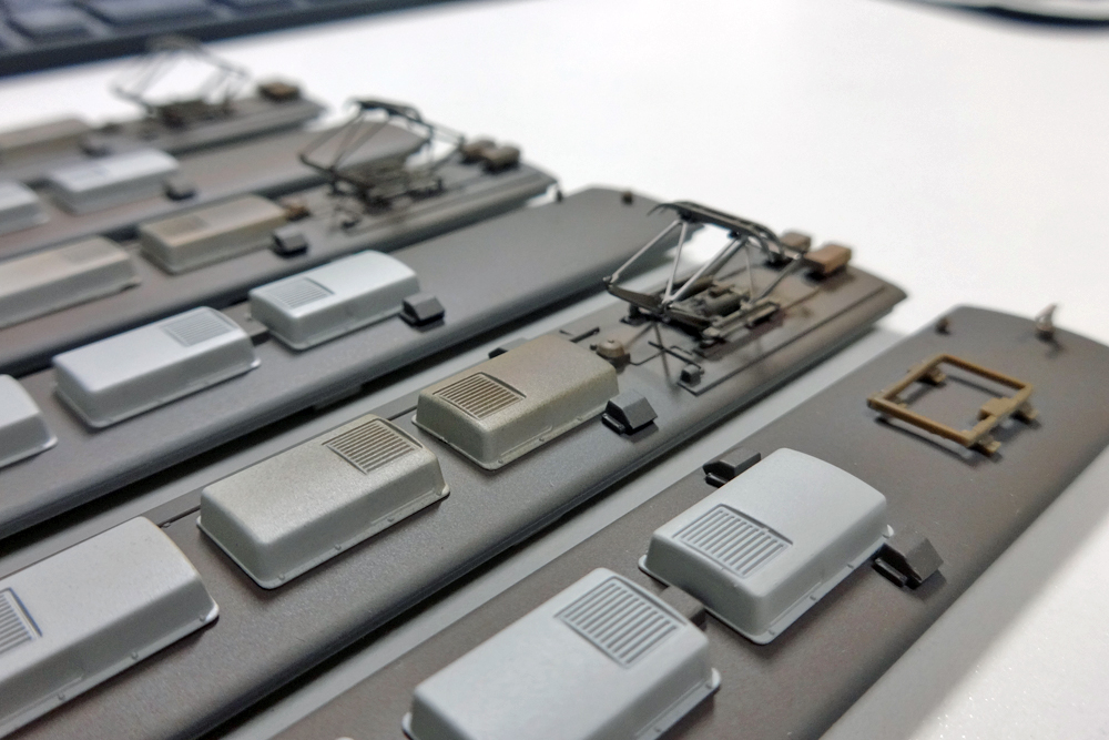取り付け後、ヒューズボックスと避雷器・アンテナはGM14番で筆塗りにて塗装。