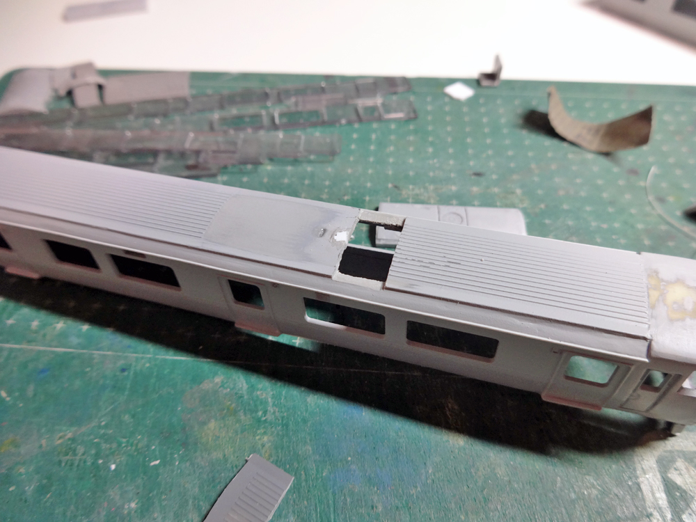 残しておいた屋根の端材を必要な長さだけ切り出しておいて、それが嵌まるだけ屋根を切除します。