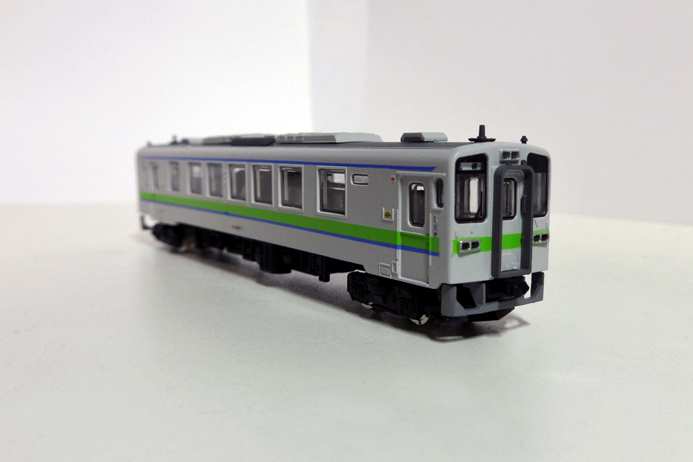 ホワイトの色味もキハ141形に合わすべくグレー系に調色、帯は黄緑+ラベンダー色をチョイス。
