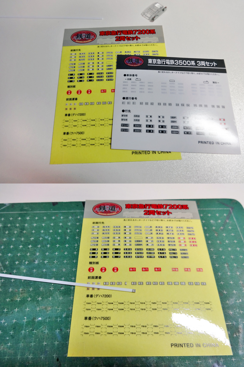 車番は製品に付属する車番ステッカーを使用せず、GMから発売されている東急3000系列向けの銀色インレタから適当な数字を拾ってきています。
