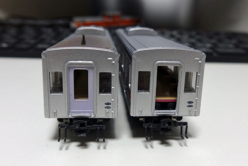 という訳でクハ3000系の貫通扉は切除してしまいました。鉄コレ特有の断面が見えてしまうのがなんとも…といったところですが、それはそれ、これはこれで。
