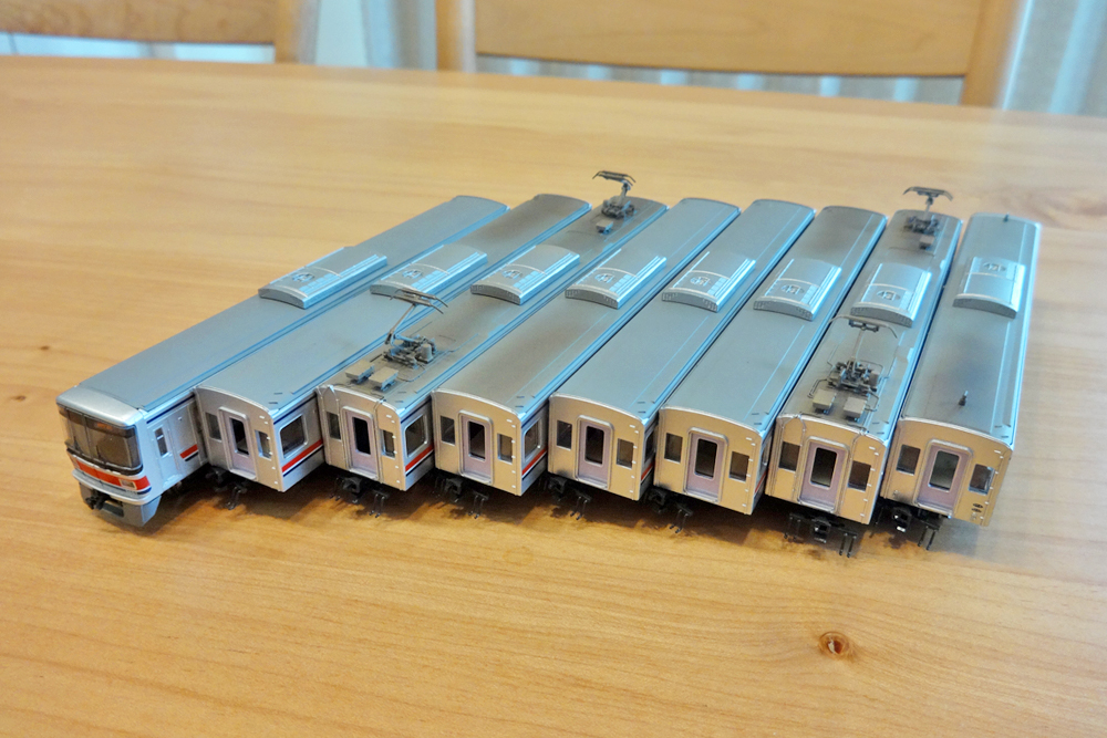 久々の長編成もの(個人比)で机の上を占拠する8両分の車体とパーツには閉口したものの、完成した後に「編成もの」として形が残るのは良いですね。