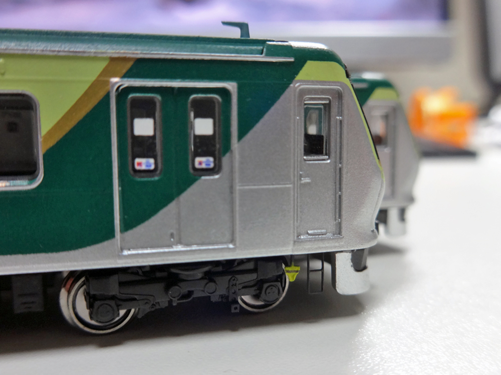 中間車は鉄コレ動力に合わせたサイズに調整してあるため、無加工で取り付けられるのがありがたい限りです。
