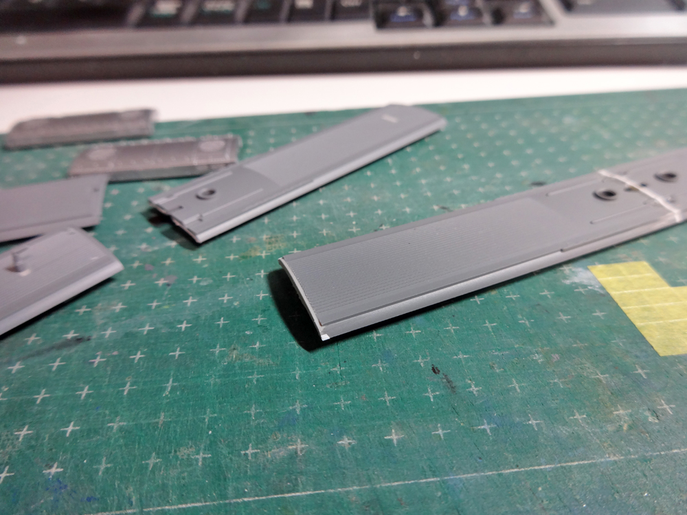 作業は簡単で、正規の先頭屋根を治具としつつ長さを短縮、端部のビード約0.5mm巾を削り落とします。