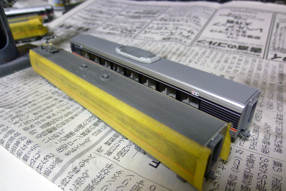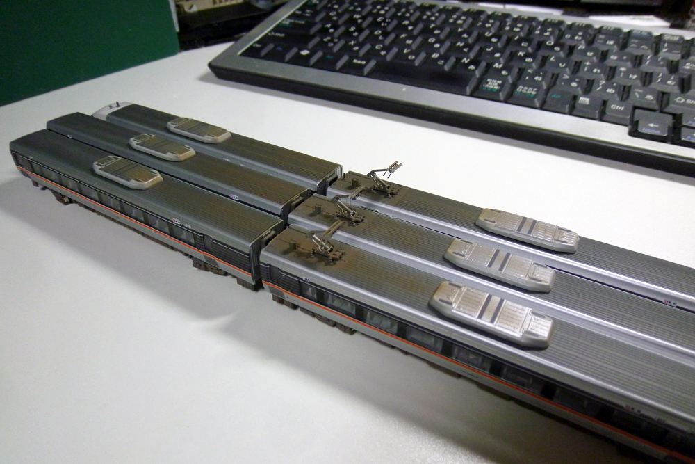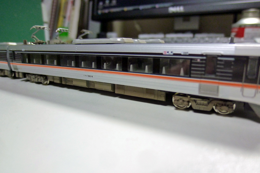 熱した鉄は冷めぬうちに…とばかり383系のウェザリングをしていきます。