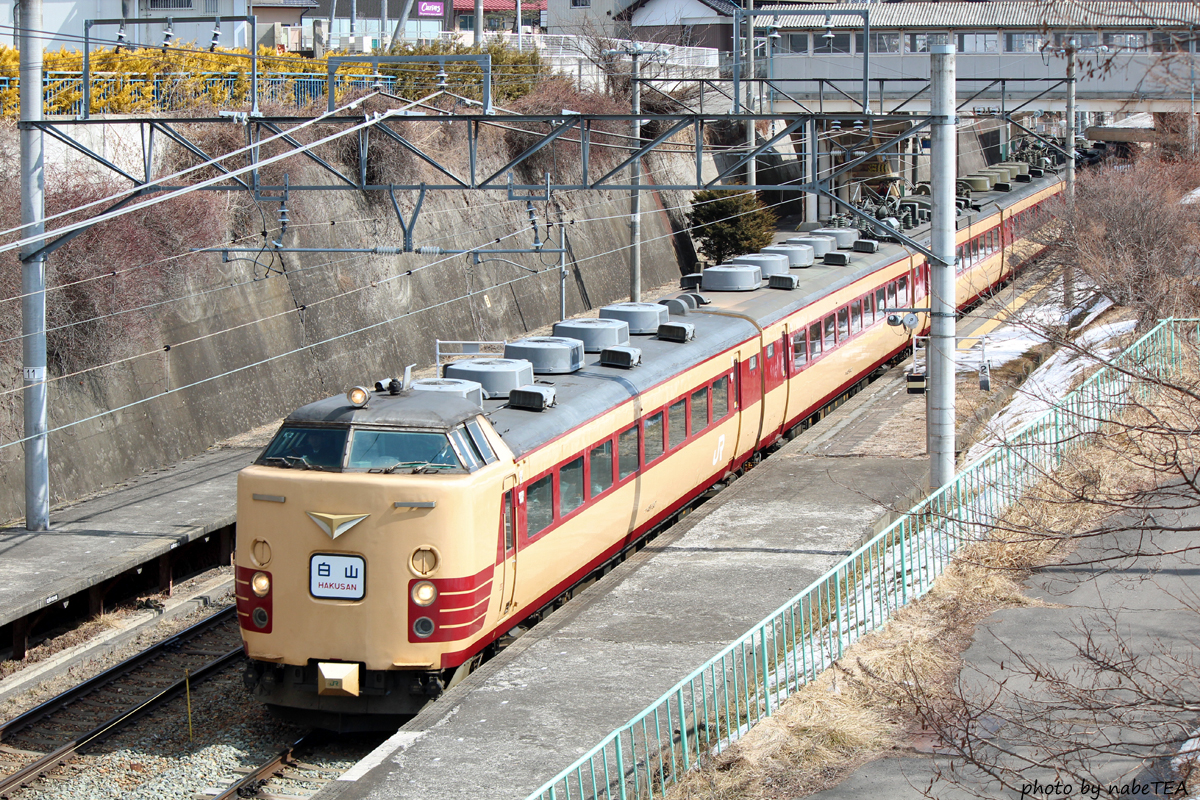 485系K2編成を使用した白山号は、軽井沢方が絵幕、長野方が字幕になっていました。