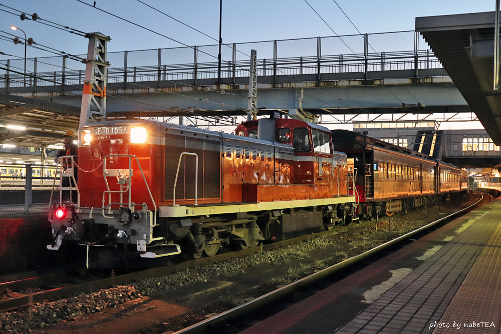 係員さんの誘導で車庫へと引き上げていきました。この客車、DL牽引でもカッコイイですね。