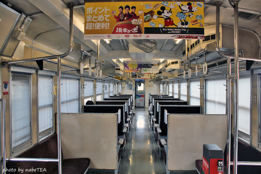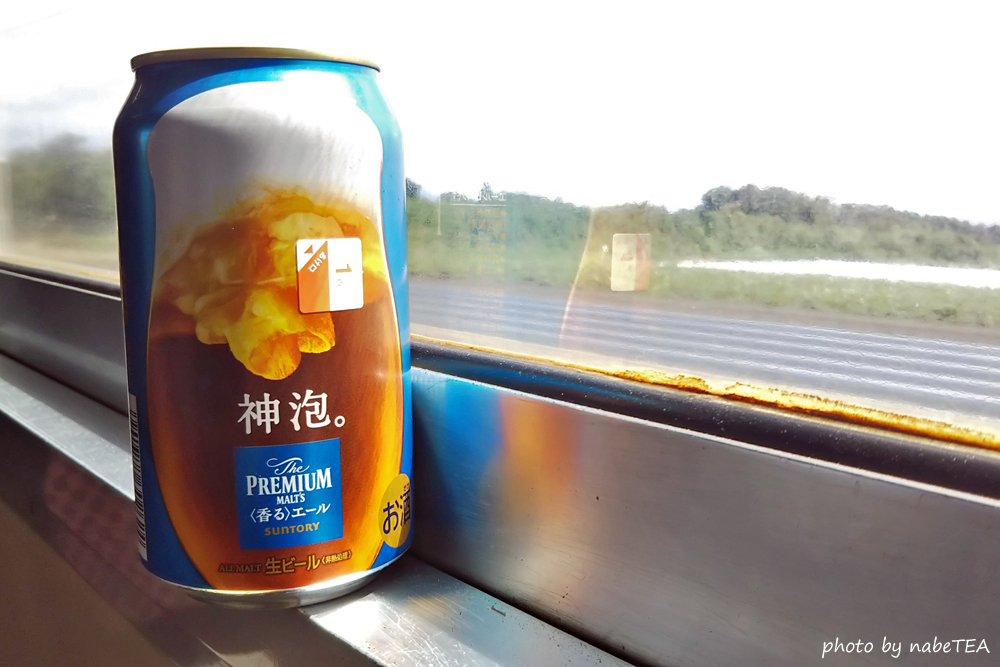 700番台なら窓下が少し広くなっていて缶ビールや飲み物を置くことが出来ますが、このキハ47ではそうもいかず。
