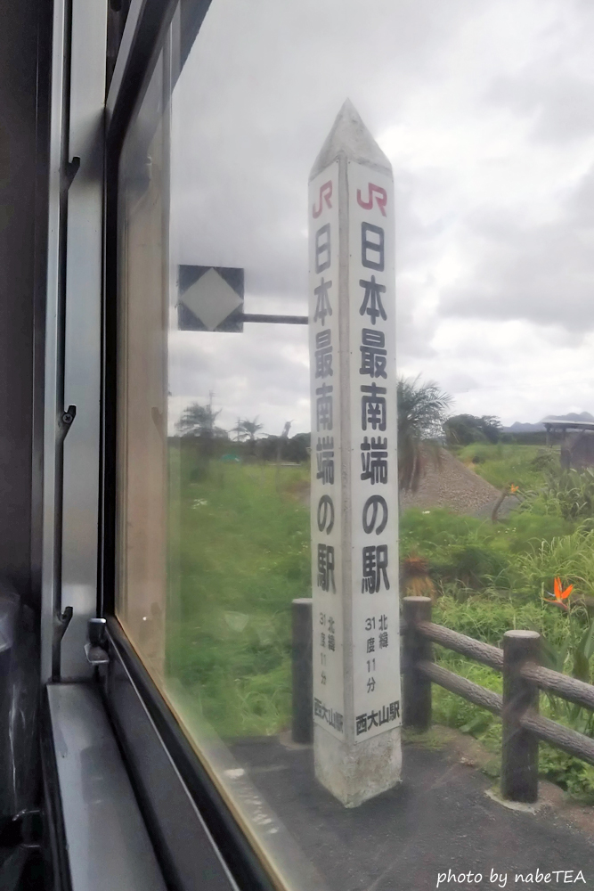 西大山駅の「日本最南端の駅」の碑は車内から見学。