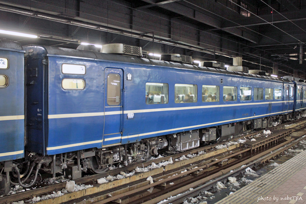 この日の客車は茶色編成で「スハフ14-5+オハテ12-1+スハフ14-501」の編成。
