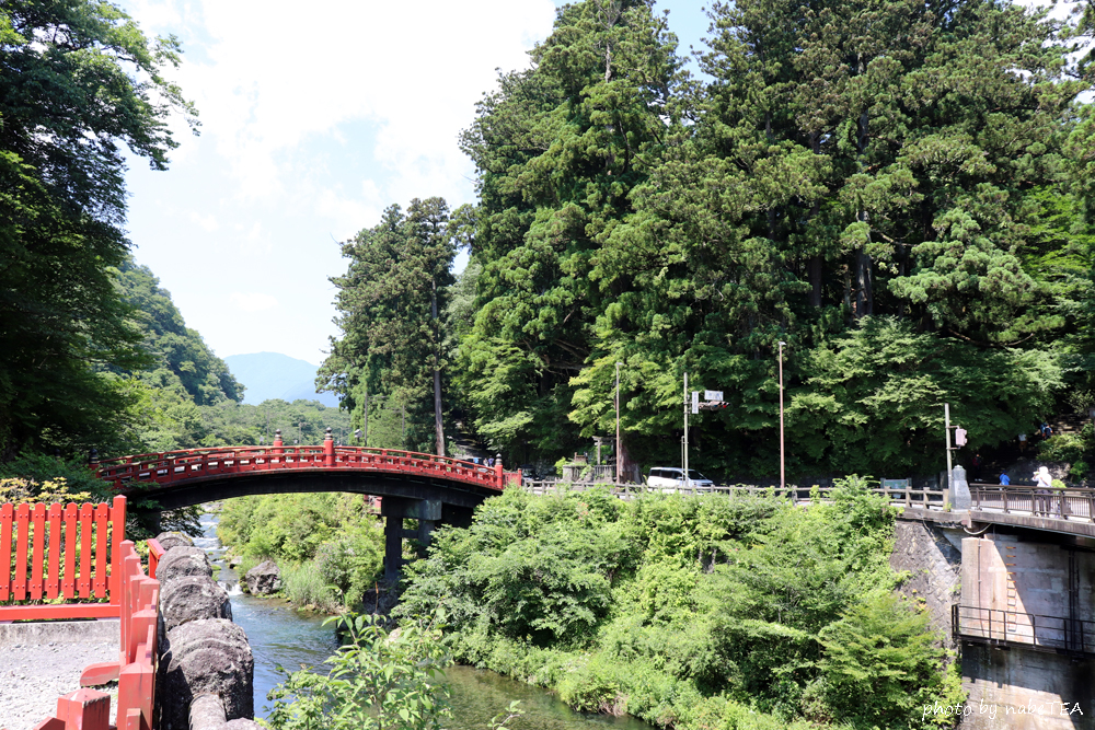 日光では一応観光ということで東照宮へお参りして来たのですが、行くならばまずはここから…ということで神橋バス停でバスを降り、歩道から神橋を眺めます。