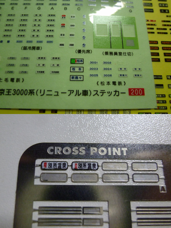 手元のステッカーの山を探してやっと見つけたのが京王3000系ステッカーに入っている松本電鉄3000系用ワンマン快速幕。