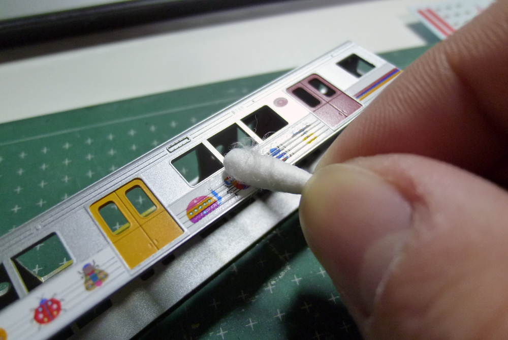 カラ―帯はすでに塗装で再現していますから、今回は別所線ロゴと原田氏のロゴのみを使用します。