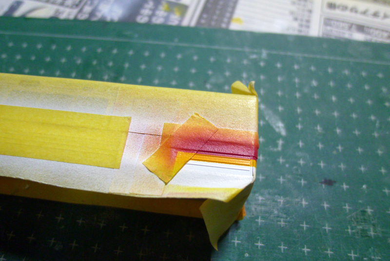 マスキングは剥がさずに有効活用、帯部分だけを残してさらにマスキングを追加します。