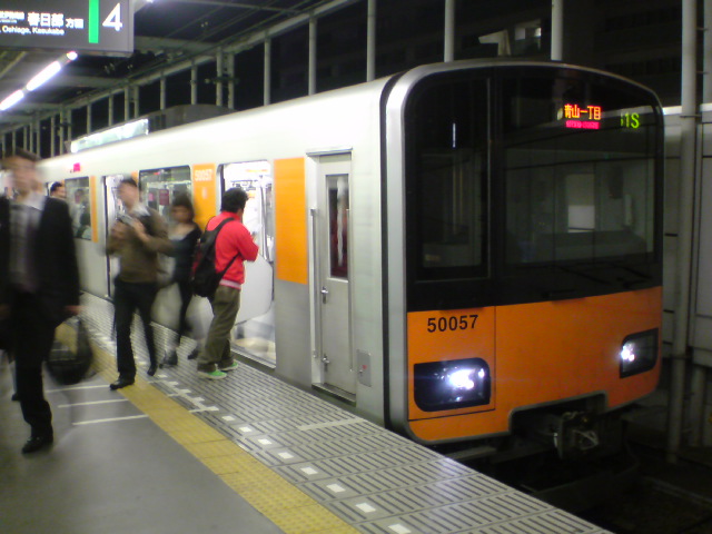 このダイヤ乱れで運番もメチャクチャ、本来メトロ運用の上り青山一丁目終に東武50050系が充当されていました。行き先表示にかなり違和感が(汗