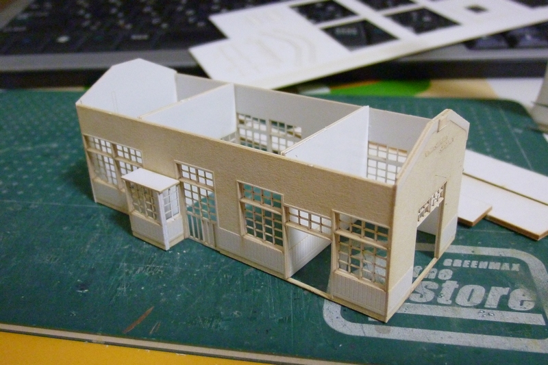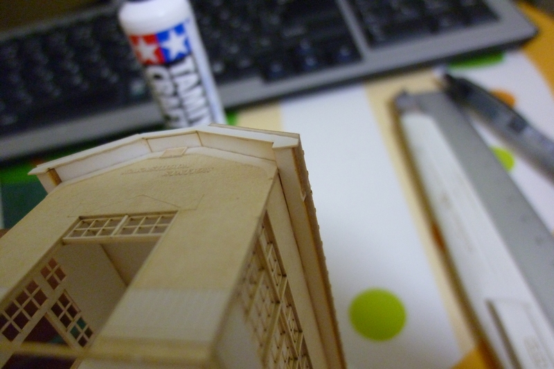 さらにこのキットでは駅舎内の間仕切りも再現されていますので、口にする前に接着していきます。