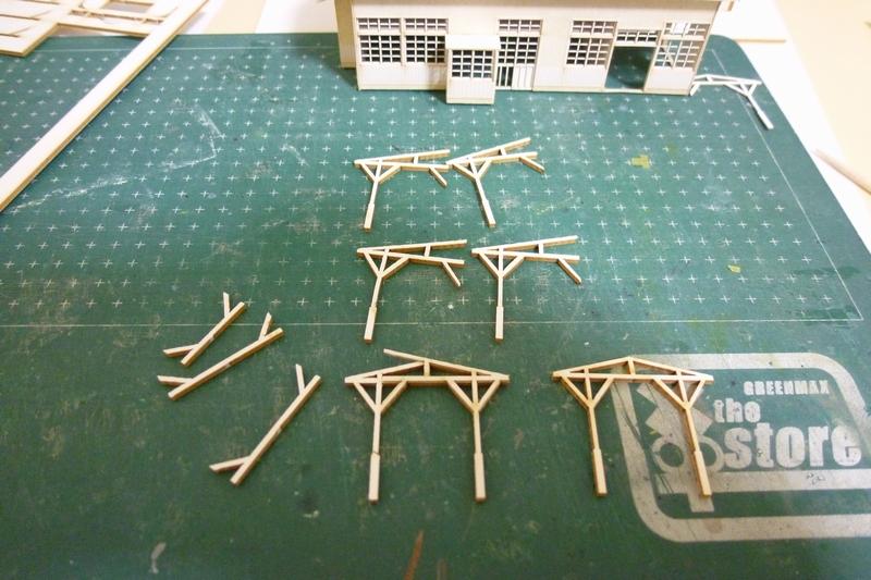 そんなわけで駅舎も組み終わりホーム上屋の製作を。