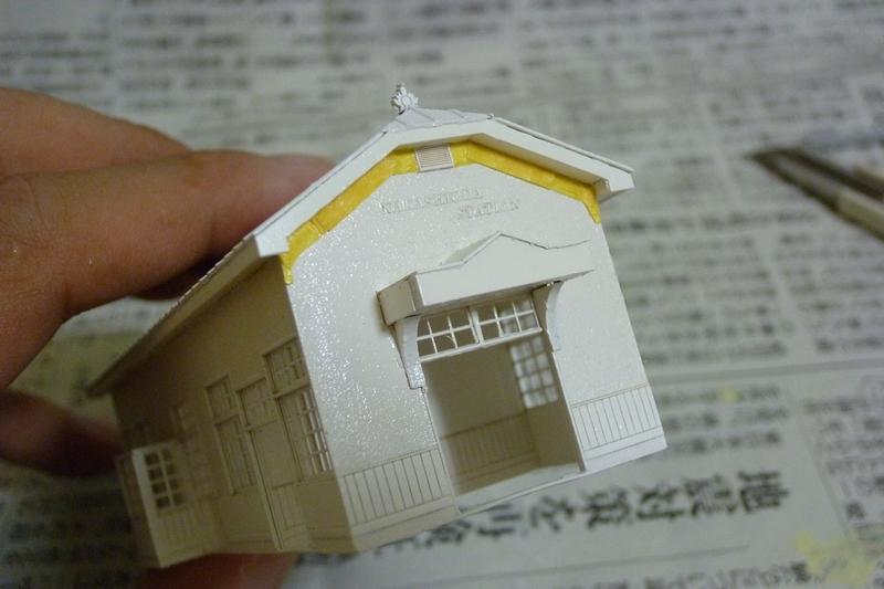 それではここからが本番、駅舎の塗り分けを開始します。