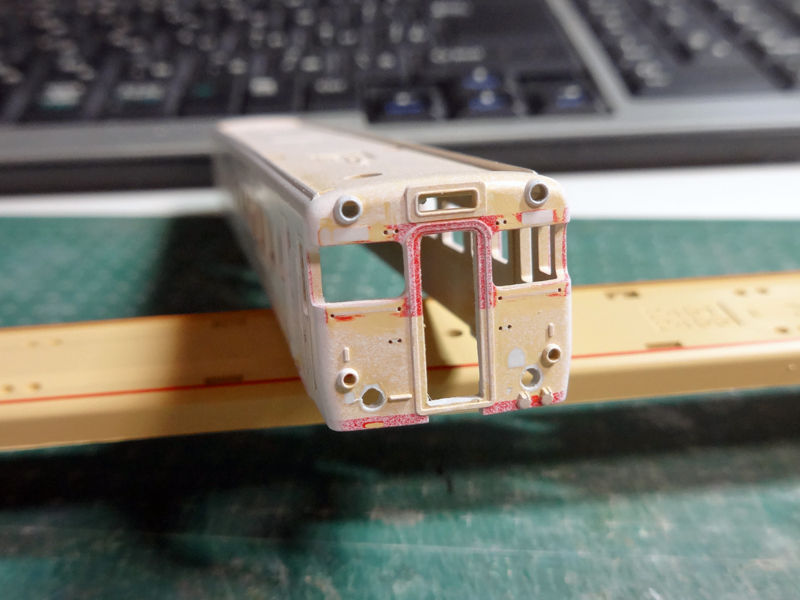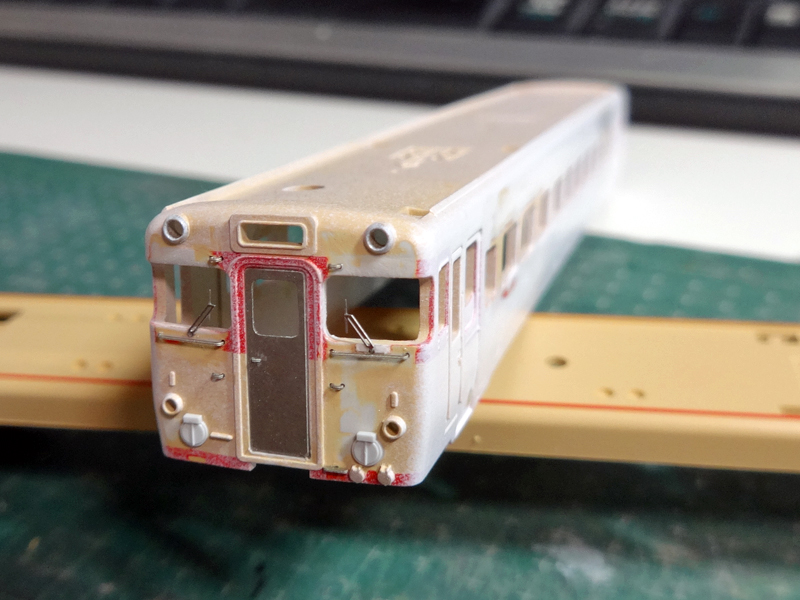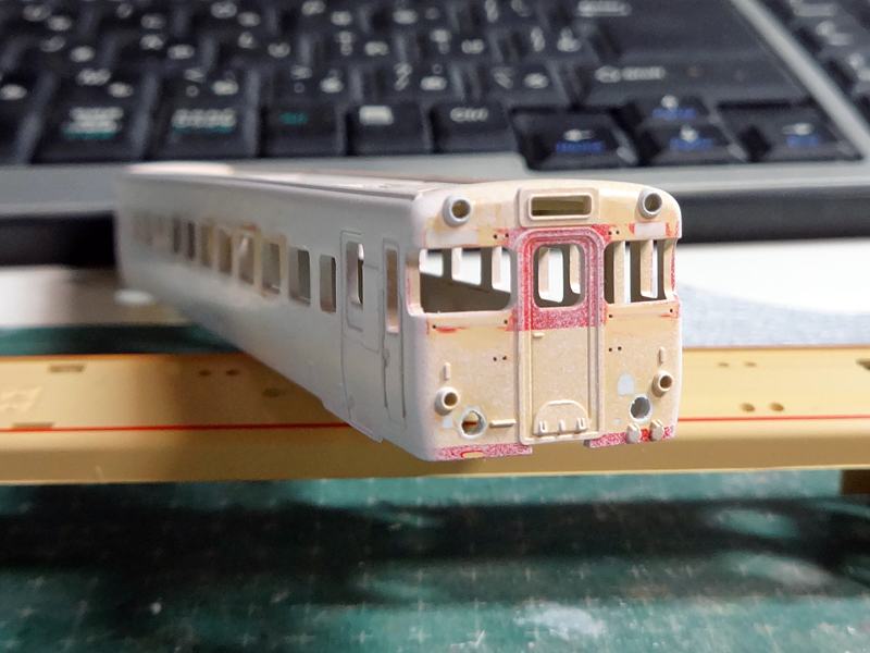 さて、種車となったキハ58-1100のタイフォンはスリット式のため、まずはこれを削り落とします。