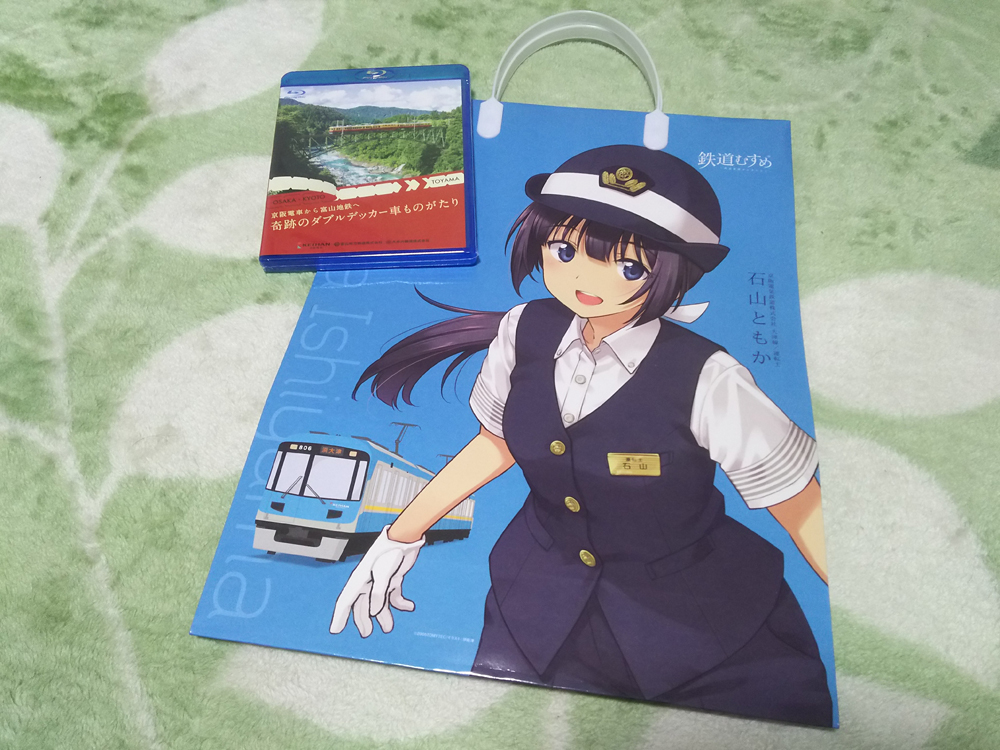 同社の鉄道むすめ「石山ともか」と京津線800系が書かれた大きな紙袋はかなりのインパクトです。