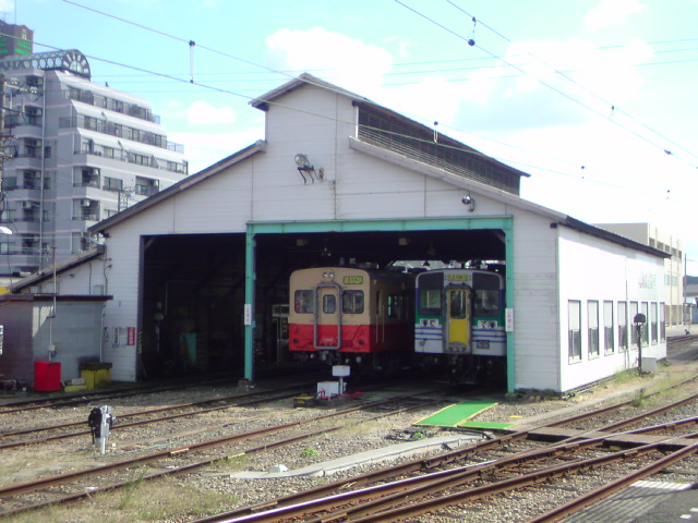 中間の高師駅には車庫が併設され、側線にも列車が待機中でした。