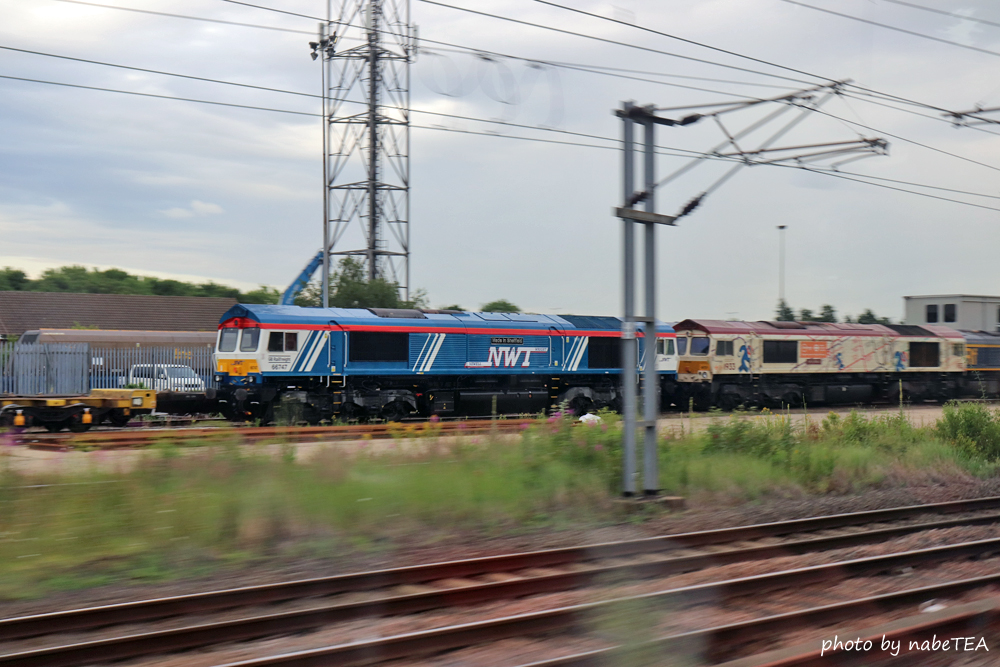Class66、Class67ともにEWSカラーは見掛けていない上に、撮れているのは列車内から捕捉できたこれだけ。