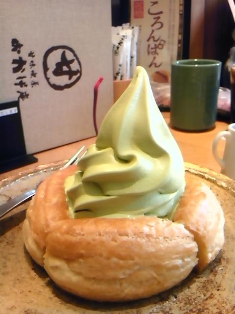 ころんぱんが1個150円、ミニ抹茶シロノワールにカフェオレを飲んで1000円弱。