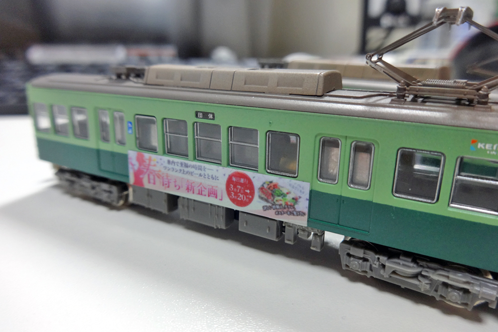 一般色のほか塗装変更編成・アニメコラボラッピング等は注目度も高く順次製品化されてきたものの、一般的な広告編成は製品化のハードルも高いのか基本的には発売されていません。