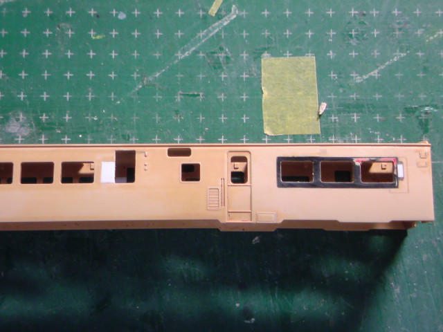 全く同じ位置の反対側にも同様の要領で窓3連をはめこみ、普通室部分の改造は完了です。