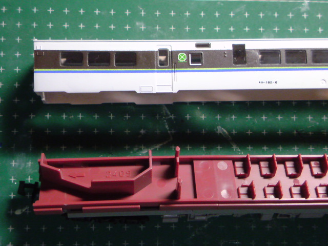 特急オホーツクに組み込むべく製作中のキロハ182形、バイトから帰宅後に屋根をいじりました。