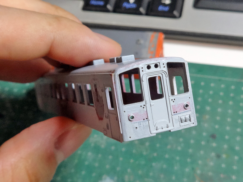 車体加工の仕上げに手すり・ワイパー等を植えていきます。