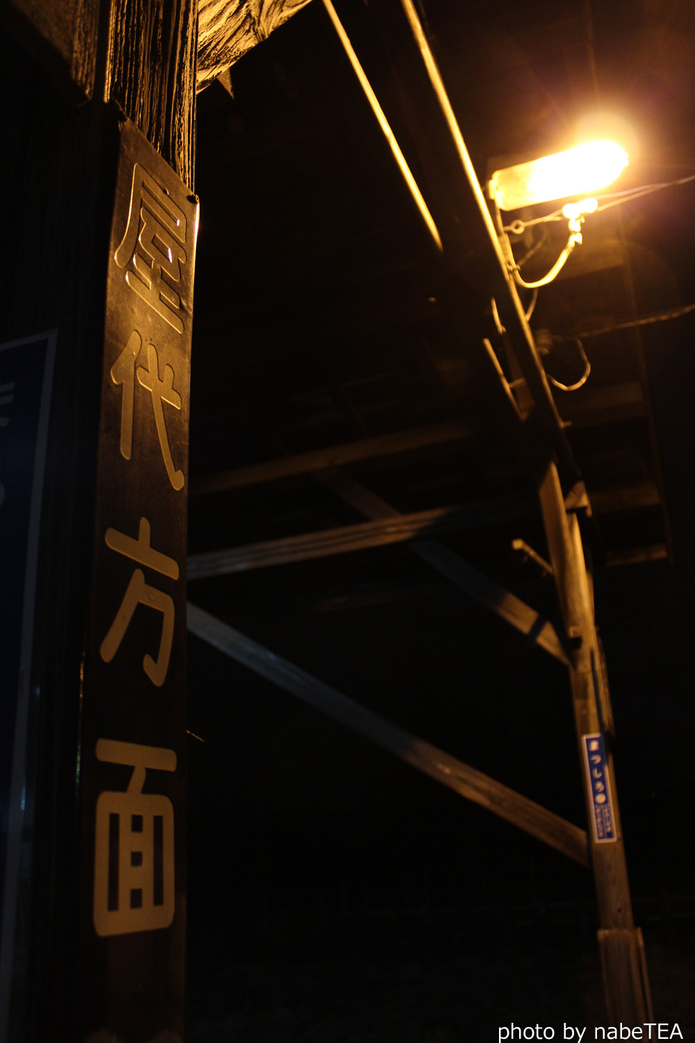 1・2番線ホームの上屋が一箇所だけ白熱灯のような電灯になっていました。