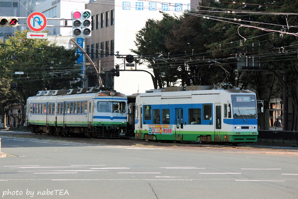 福井駅前への"ヒゲ線"が分岐する市役所前駅の交差点は良い撮影スポットですが、やはり交通量の多さがネック。